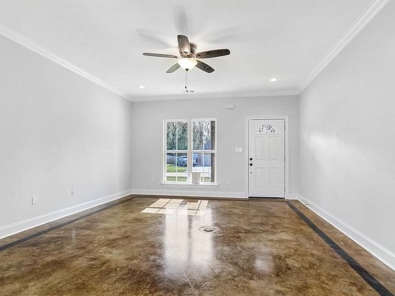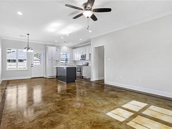 Custom BuiltHome with a split floor plan. Beautiful finishes including scored concrete floors, high ceilings, quartz counter tops with soft-close doors in the kitchen, low E windows for greater efficiency. Master Bedroom has a large ensuite bathroom with double sinks, a soaking tub and separate shower. Outside has a covered patio and is stubbed for a gas grill. Beautifully sodded yard. Flood Zone X.