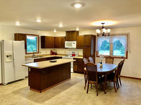 5 bd, 2 ba, minutes from town. Enjoy the country setting on your 5 acres. New septic, new well, new kitchen cabinets, new seeded lawn and trees. Patio door added and leads to a spacious deck. Love to cook, this kitchen boasts 3 ovens! Lower level includes family room, bath room, 2 large bedrooms, utility laundry room and a large storage room. The upper level of the home was moved to this location and placed on a new foundation and an addition was added. Set your tour up today!