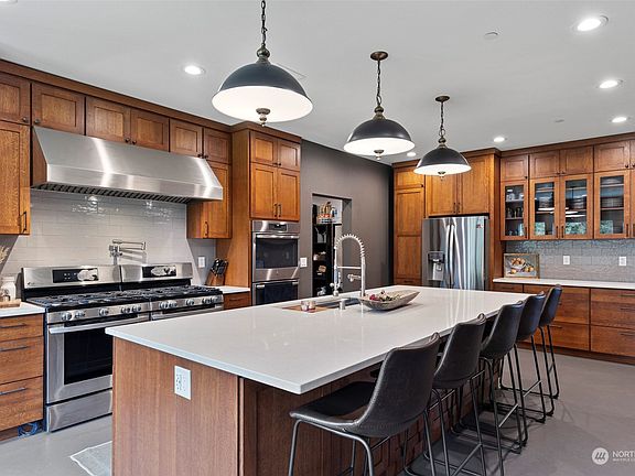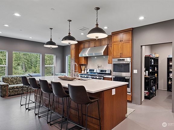 Experience warmth & comfort in this expansive home on acreage. 62 solar panels, central vac, 75’ pull thru in shop w/ 14’ doors, in & outdoor RV hookups & a 2nd floor covered deck is just the start. Shop level includes a full apartment, w/ Murphy Bed & 2 offices. Ride the elevator up & find gorgeous views, open spaces, main bed w/ en suite, laundry w/ dog wash station & a dream kitchen. Quarter-Sawn Oak cabinets, quartz counters, dual stoves & dishwashers, 4 ovens & walk-in pantry. Marmoleum flooring adds elegance & durability. 3rd level is a large living space, 3 bdrms & full bath. The tip top cupola is waiting for your vision. This home is packed with incredible features, too many to list. Don't miss the opportunity to live here!