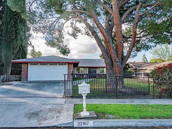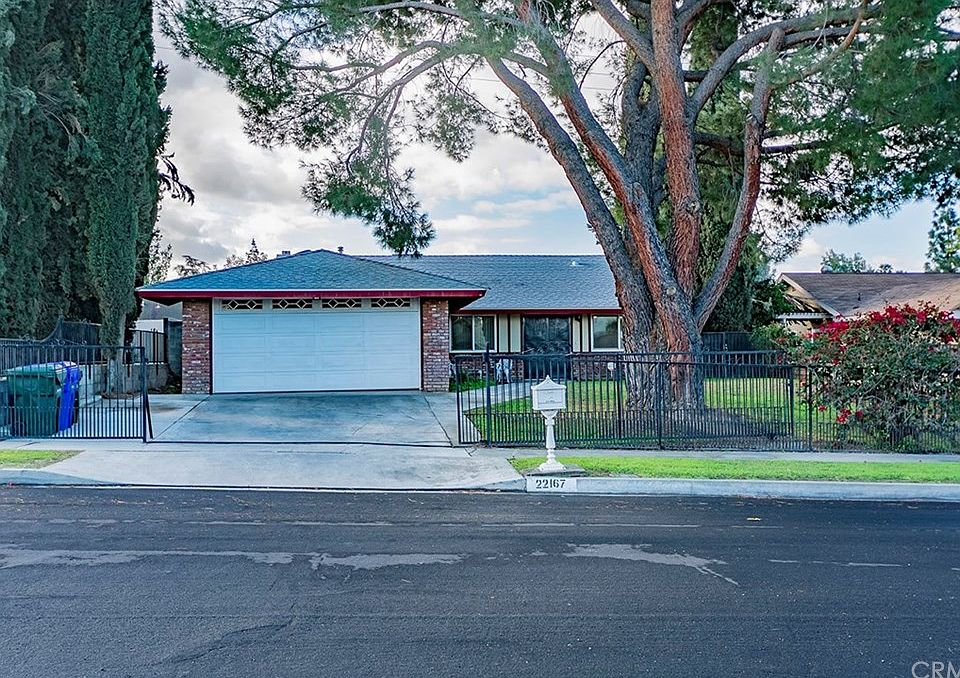 Welcome to the great City of Grand Terrace. This is the home you have been looking for, bright and spacious! As you pull up, you will notice the brick exterior and beautiful shady tree adding that perfect touch to your home. The home boasts a living room with a ceiling fan, a kitchen with plenty of cabinet space, a breakfast bar in addition to the dining area and a family room with a fireplace. The floor plan has a master bedroom with full bath, 3 additional bedrooms and a full hall bath. This home also offers a newer water softener, recently replaced roof, electrical box and tankless water heater. Also, a centralized Aprilaire air purification system for allergies and clean filtered air. Other features include a rolling driveway gate, a permitted screened in patio ( not included in sq footage), perfect to host all of your parties and events. The back yard is home to fresh yearly fruit with two orange , apricot, champagne grapefruit, apple and tangerine trees. Lowest priced SFR in Grand Terrace ..Great buy.