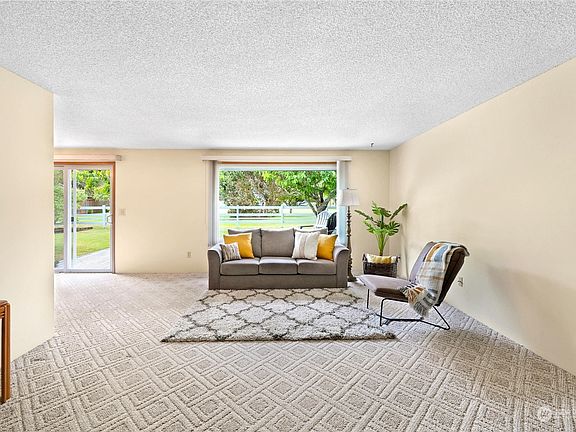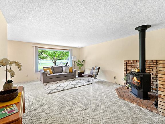 Come home to this one-level rambler, moments from downtown Anacortes. Just a block from Volunteer Park and walking trails. It has 2 large bedrooms plus a bonus room or use it as 3 bedrooms. The primary bedroom has its own ensuite bathroom, and two big windows looking out on the green and manageable yard. The second bedroom was expanded with a big bonus room; windows all around to let in the light. There is a new, cozy, freestanding gas fireplace in the great room to warm up the space. The yard features well-maintained plantings and fruit trees. There are even three sheds for storage or projects. Two-car garage and wired for a generator. Extra space around because of the alley behind and the vacated street beside the property. Come see!