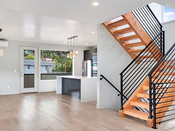 This contemporary jewel is clad in custom-painted channel lap and custom-stained 8-inch clear cedar siding and features plenty of glazing – energy-efficient Pella Encompass windows – to brighten the polished interior. Inside, there are gorgeous Hubbardton Forge light fixtures, quartz countertops with 3cm waterfall edges, Italian tile, solid hardwood floors in warm tones, solid-core doors, and a beautiful Douglas fir floating staircase. The massive rooftop deck, which uses the entire footprint of the house, has jaw-dropping views of the city, the Eastside, Mount Rainier, and the Cascades, and is engineered to accommodate a hot tub and a gas grill. The large lot – a full 6,000 square feet – is professionally landscaped in chic Pacific Northwest style. The North Beacon Hill neighborhood boasts walkability, a wealth of amenities and proximity to downtown, and the house is a ten-minute walk to light rail. Exterior Channel lap and custom-stained cedar siding Pella Encompass windows Rooftop deck engineered for gas grill and hot tub Professional landscaping Interior Hubbardton Forge light fixtures Quartz countertops with 3cm waterfall Solid hardwood floors solid-core doors Hand-picked Italian tile Douglas fir floating staircase