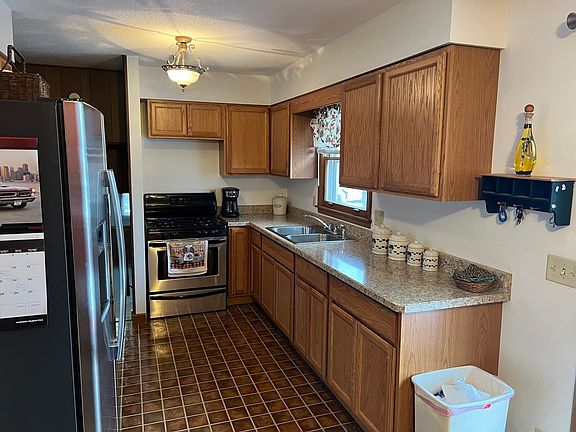 Charming tri-level house with 3 bedrooms, 1.5 bathrooms, and large 4 car garage. The kitchen offers updated countertops, ample cabinet space, and all appliances included. The dining area is open to the living room. The family room boasts a cozy wood-burning fireplace and has a den area across from it. The basement has exterior access. This property also features a spacious garage, providing ample parking and storage space.. Large deck, covered front porch and tree lined yard around out this great house. Great location, close to schools. Don't miss the opportunity to make this your home.