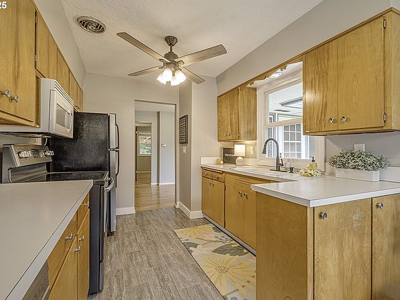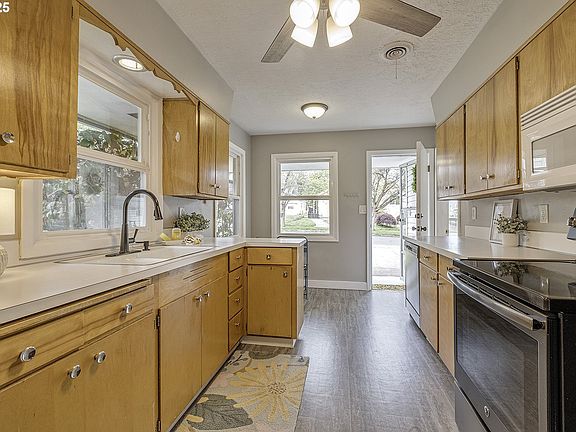 1957 bungalow nestled on a spacious 1/4 acre lot with mature shrubs, flowers and trees. This timeless home features beautiful refinished oak hardwood floors and a paned double expterior french door adding to its enduring appeal. Kitchen features stainless steel appliances & new flooring. Huge laundry/flex room offers multiple uses, lots of storage & new flooring. Fully fenced and gated, the yard features a newly constructed 20 x 20 shed w/ room for workshop, storage & is power ready. Multiple recent updates to roof, furnace & A/C, Plumbing, electrical, sewer line, water line, windows, insulation & more. Charming with plenty of room to garden, relax, or entertain, this home offers the best of both indoor and outdoor living. All of this, just moments from Pacific University, the farmer's market, parks, shops, and restaurants, makes this property a delightful blend of comfort, convenience, and character.