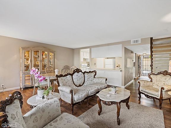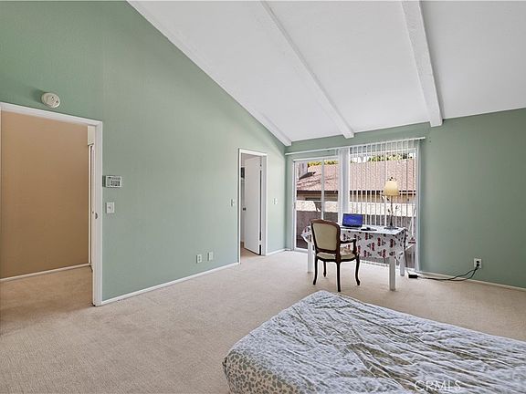 This home also boasts a private outdoor downstairs patio and upstairs balcony off the master suite, perfect for enjoying the warm California weather. Other features of this property include in-unit laundry facilities, a detached garage, and access to community amenities such as a sparkling pool and green areas.