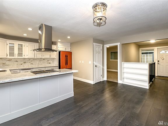 Newly remodeled 4 bedroom 3.5 bath contemporary home with a breathtaking views of Hicks Lake! Features Open Floor plan, multi-generational layout 2 Master bedrooms suites one on main level other suite on lower level. Spacious Den, detached garage w/Shop space, on slightly over a 1/4 acre lot, Extra 250sqft office space above garage with it's own private entry. Property also has a private walk-way path to the lake.