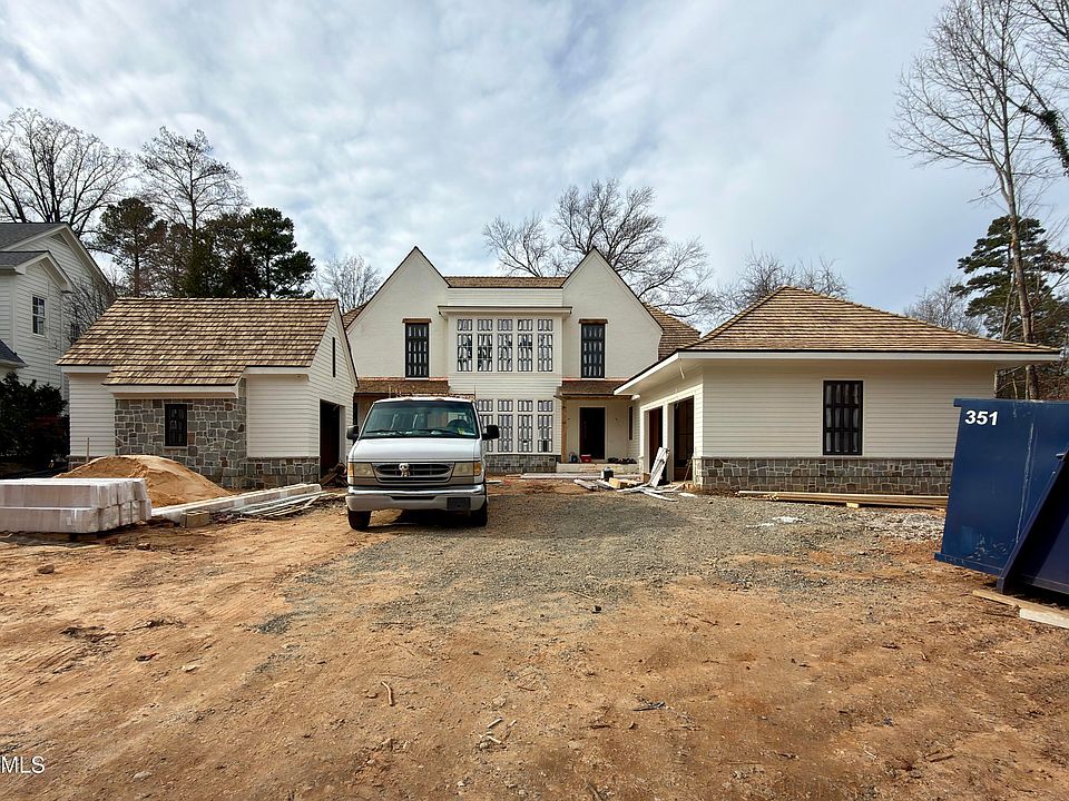 Custom home built by DJF Builders and designed by Frazier Home Design in Raleigh's highly sought-after community of Coley Forest. Features include a first floor primary suite, first floor guest suite, cedar roof, custom pool with spa, outdoor kitchen, and a dedicated pool bathroom.