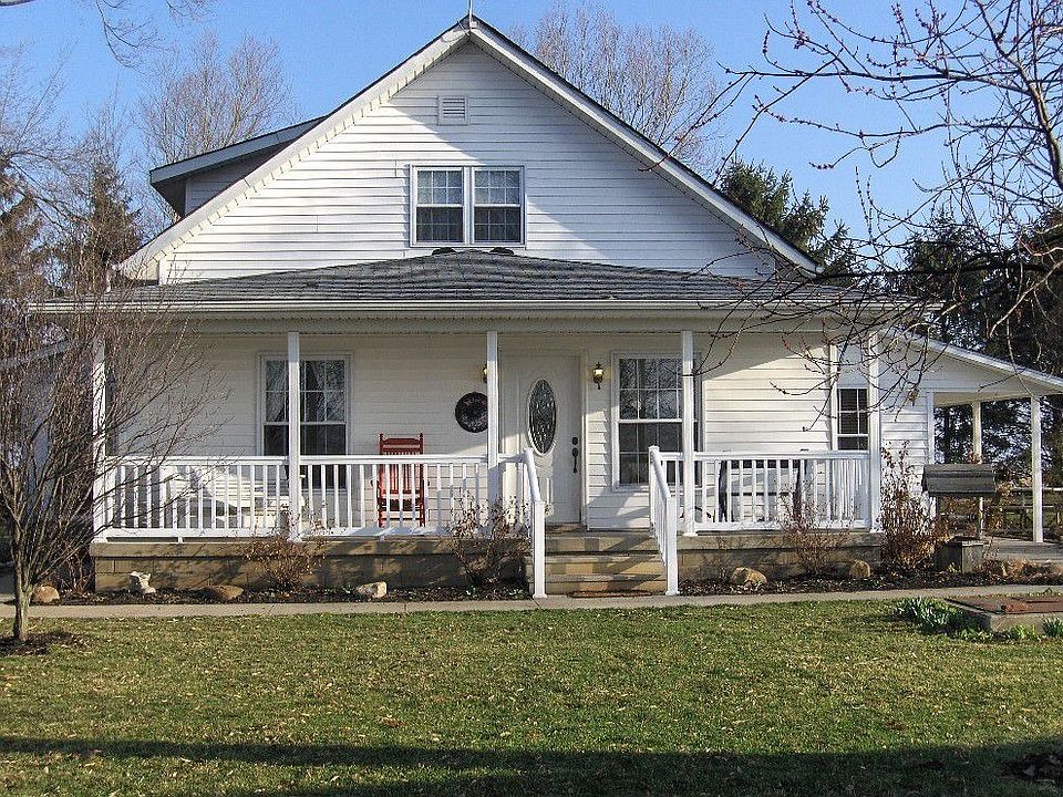 Peace and Quiet await you in this beautiful completely remodeled country home. 3 Bedroom, 2.5 Bath. Master Suite on main level. Spacious rooms include dining room, living room, new kitchen, office, laundry room and enclosed front porch. Wood pellet stove in living room. Guest house with full bath in outbuilding. Work shop with concrete floor and overhead door and a "big 'ol red barn"