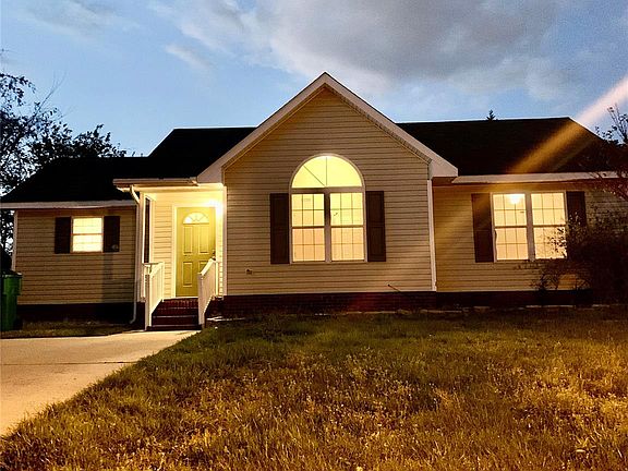 Attractive ranch home located at the end of a cul-de-sac, with an updated kitchen featuring black and white appliances and oak panel cabinets with a peek-a-boo opening into the dining area. Dining Room area along side spacious great room accented by a fireplace. Luxury vinyl laminate floors in the living areas. Large Primary bedroom with cathedral ceiling and bright white bathroom, with two other bedrooms serviced by their own bath. Back on the market. The Seller has just completed renovations, Brand New Paint, Brand New Floors and other items,
