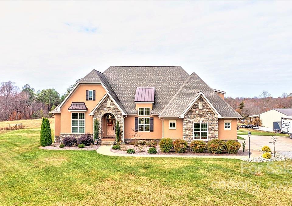 Gorgeous 3 br 3 ba home on approx 31.518 acres in countryside between Shelby & Fallston. Home is constructed of synthetic stucco & stone w/open floor/split bedroom plan. Spacious rooms. Several trey ceilings. 2 primary suites. Kitchen has center isle, granite countertops, brick backsplash, stainless appliances, breakfast bar, breakfast area, large electric cooktop stove w/double convection wall ovens. Primary Br 1 has a walk-in closet. Primary Bath 1 has granite countertops, double vanity, soaking tub & tile walk-in shower. Laundry Rm has utility sink & overhead cabinets for storage. Upper level has a large bonus room w/2 window seats w/storage plus walk-in attic storage. Side-load double garage w/storage room. Large covered rear stamped concrete porch w/stone f/p w/gas logs, ceiling fans, seating area & dining area. There is a detached metal workshop w/2 roll-up doors, 1 regular door, a half bath & attached lean-to tractor shed. Approx 6 acres is fenced pasture with an electric fence.