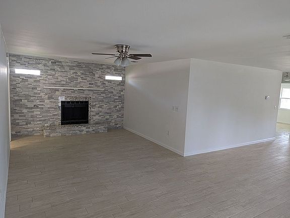 Lovely 3 BR 2 full bathroom split plan with 2 car garage.Nice quiet family neighborhood in great school districts.This house is in move in ready condition.Spacious living room,with breakfast nook leading into the beautiful family room that features a stunning fireplace done in marble and granite.Two spacious bedrooms with ample closets are on one side of the house.On the opposite end of the house is the master bedroom .It features a nice sized walk-in closet ,then the full master bathroom.Leading through the french doors in the family room you enter the lovely screened lanai for entertaining,over looking the great space in the back yard for chidren or pets.The back yard is almost all fenced.Coming through the garage you enter the spacious laundry room with brand new cabinets and a built in sink.Continuing on into the brand new kitchen with upgraded shaker white cabinets,appliances still in the wrappers.Granite counter tops are brand new as well.This home also has brand new energy saving windows.The house is freshly painted inside and out.It also has brand new doors throughout.New ceiling fans throughout have been installed,new tile ,vanity and tub have also been added to the guest bathroom.Woodplank look porcelain tile has been installed through out .This house is like brand new ,must see to appreciate.