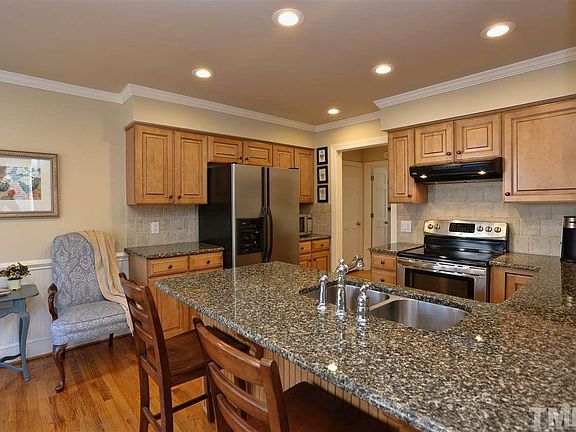 Gorgeous Stonehenge ranch loaded w/ upgrades! Extensive hardwood floors, crown molding & recessed lighting. Stunning kitchen w/ granite, stainless steel, newer cabinetry & tile backsplash. Spacious living room has wood burning brick masonry fireplace & dining room has bay window. Generous bedrooms. Both baths fully updated w/ new hardware/lighting & ceramic tile floors & shower surrounds. Enormous unfinished 2nd floor walk-up, plumbed & ready to finish! Beautiful landscaping & fully-fenced backyard.