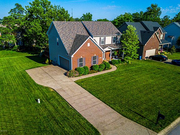 This beautiful 4-bedroom, 3.5 bath home in Oldham County with an open floor plan, two huge Family Rooms, a covered front porch. a large deck and even larger covered patio perfect for families and entertaining. This home has tons of living space inside and out. The 1st floor with 9' ceilings throughout has a large Family Room with open sight lines into the dining area and kitchen. Between the kitchen and 2-car attached garage is a well sized mud room or can be used as a small office. Upstairs is a large Master Suite with an attached Sitting Room, walk-in closet and private Master Bath with separate tub and shower. There are 3 other good-sized Bedrooms, a Full Bath and a Laundry Room fed by a Tankless Water Heater. You'll never run out of hot water in the kitchen, bathrooms or laundry! In the Walkout Lower Level, you will find another huge Family Room with a partial Kitchen and another Full Bath. The deck off the first floor is over 500 sq ft and the patio below is even larger at over 850 sq ft. The bottom of the deck is covered in corrugated roofing material protecting the patio below, so you can enjoy sitting outside during a nice summer rain. You'll love the yard. Perfect for kids or gardening. This home is within walking distance to Oldham County Country Club and the Oldham County Aquatic Center. The Kitchen refrigerator, beverage center, ice machine and wooden top do not remain. Basement refrigerator stays with the home.
