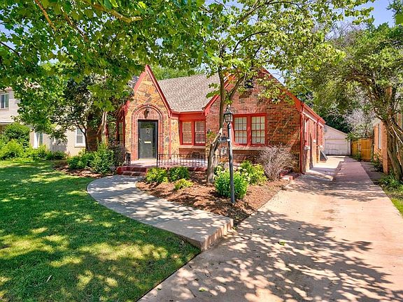 This 1930's historical home located on 27th Street in the heart of OKC is an absolute stunner! Nearby is a collection of elegant conveniences including the Plaza District, the Paseo Arts District, Bricktown, and Classen Curve. The area is bursting with creative minds working to combine history and today's diverse cultural businesses with upbeat restaurants, shops, theaters and boutiques! Every detail has been restored or updated to keep the charm of this beautiful home. Walking up to this story book like home there is a black railing that leads the way to a charming porch and front door. Just inside is new entry tile and the fireplace was redone to match. The entire interior has been freshly painted a neutral color that creates light in every room. Many updates have been made to ensure the home will provide peace of mind for many years to come. Newer HVAC, updated electrical and plumbing lines, new toilets, new tankless hot water heater, newer dishwasher and microwave and a security system was added just to name a few. The original hardwood flooring flows throughout the home and it is stained a light color. Light fixtures and fans have been changed out in every room, plus can lights were added in the living and dining. Kitchen cabinets have been painted with new hardware and the breakfast area built-ins are newly stained. Downstairs is a basement partially finished with new panelling and an outlet added for utilizing a treadmill or similar device. This space could be used for many different things! Seller has already added a sump pump and beams to ensure functionality of the space. Outside is a great concrete patio that continues alongside the home and a detached 2 car garage. A grassy area with mature trees and bushes provide a heavenly courtyard that is private and secluded from the city. Own a piece of history without having to lift a finger. This home has been modernized and revamped to be your perfect space in the perfect setting!