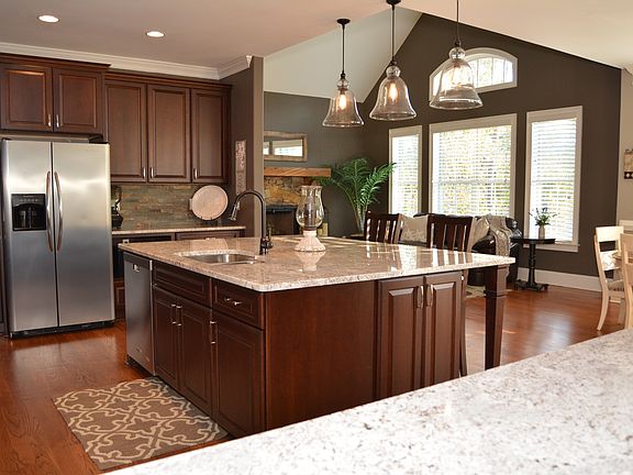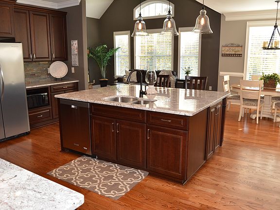 This open floor plan is perfect for entertaining family and friends. You will absolutely love the main living area with it's high ceilings and stunning windows across the entire back! There are hardwood floors in the main living areas. The brand new kitchen design is truly astonishing; it includes a large granite island with Pottery Barn lighting, and gorgeous cabinets throughout. The kitchen also has a five-burner gas cook top, brand new double oven and dishwasher. The keeping room is off the kitchen with a second stacked stone fireplace. The main level includes office, large open dining room, and separate breakfast room. The Family room includes a vaulted ceiling with rock fireplace. You will love this gorgeous home that sits on .64 acres with room to enjoy the outdoors. It has an upper deck and lower patio with a rock fire pit. Home has a large master on the main level with double treyed ceiling. The master bath includes a jetted tub, his and hers vanities and oversized tiled shower. The main level has 2 other bedrooms that share a Jack and Jill bathroom. This home has a second driveway to the basement level entry. The basement if fully finished with two large bedrooms, a huge office space with cabinets galore. It also has a large family room with neutral colors. The basement has a full size finished kitchen with large island that includes a bar area. The kitchen includes a new freestanding range/oven, new sink, and new dishwasher with tiled flooring. Has large storage area approximately 13 X 29. Has a double door access shop area that is 16.3 X 25, which includes a workbench.