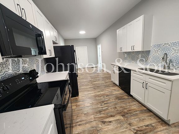 As you approach the property, you'll be greeted by a delightful rocking chair front porch, where you can relax and enjoy the fresh air. Step inside and you'll be impressed by the luxury vinyl plank flooring that adds a touch of elegance to the entire home. The kitchen is equipped with modern appliances including a microwave, stove, refrigerator, and dishwasher, making meal preparation a breeze. The tile backsplash adds a stylish touch to the space.