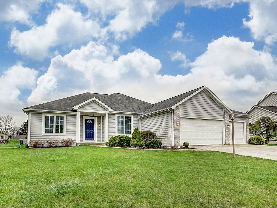 Efficient split bedroom ranch. Freshly painted interior. New carpet. Partial unfinished basement. Oversize 725 sq ft, 3 car garage with 3rd bay 26' deep. 9 ft. ceiling in GR & DR. MBR suite with walk-in closet, shower & jet tub. 90% eff. furnace. Direct vent fireplace with gas logs. Extended snack counter in kitchen. Two small daylight windows in unfinished partial, 1018 sq ft basement. Convenient location. Near all Schools and shopping. There are currently no property exemptions filed on this home. Possession at closing.