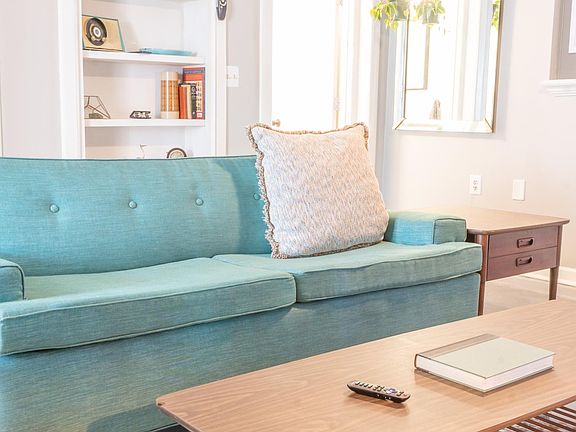 THIS IS ROUGHLY 1,000 SQUARE FOOT APARTMENT IS AVAILABLE BOTH FULLY FURNISHED AND UNFURNISHED. THE APARTMENT LOCATED IN THE REAR GROUND FLOOR PORTION OF THE HOME, THIS APARTMENT'S LIVING SPACE BEGINS OUTSIDE WITH A COVERED CONCRETE PATIO OVERLOOKING THE SHARED BACK YARD. PRIVATE ENTRANCE IS ACCESSED AT THE REAR OF THE HOME. WHEN FURNISHED THE SPACE FEATURES AUTHENTIC MID CENTURY MODERN FURNITURE AND DECOR THROUGHOUT. DETAILS OF THE FURNISHINGS AND OVERALL FLOW OF THE UNIT IS BELOW. YOU ENTER INTO THE LIVING ROOM, WHICH RECEIVES LOTS OF NATURAL LIGHT FROM THE GLASS FRONT DOOR AS WELL AS THE NATURAL LIGHT THAT SPILLS IN FROM THE BEDROOM, THERE IS A CLASSIC BRICK WALL THAT DRAWS YOUR ATTENTION TO THE MID CENTURY PIECES IN THIS ROOM. THERE IS A 40" ROKU ENABLED SMART TV WITH ACCESS TO ALL OF THE HOUSE'S STREAMING SERVICES AND TV CHANNELS INCLUDING NETFLIX, DISNEY+, HULU AND DIRECTV. WARMING UP THE SPACE IS A CUTE FAUX CAST IRON FIREPLACE. THE BEDROOM IS JUST OFF OF THE LIVING ROOM AND HAS THREE LARGE WINDOWS OVERLOOKING THE SIDE. THIS ROOM HAS TWO GOOD SIZED CLOSETS AS WELL AS A CEILING FAN. 2 MID CENTURY DRESSERS, A QUEEN HEADBOARD WITH BUILD IN STORAGE & POWER OUTLETS AND A MATCHING SIDE TABLE MAKE THIS BEDROOM A WARM AND INVITING SPACE TO REST. THE KITCHEN IS ALSO OFF OF THE LIVING ROOM. THIS IS A SURPRISINGLY LARGE KITCHEN WITH MODEST APPLIANCES AND A CLASSY WHITE SUBWAY TILE BACKSPLASH AND BUTCHER BLOCK COUNTERTOPS. THERE IS ABUNDANT STORAGE HERE, STOCKED WITH ALL OF THE TOOLS NEEDED TO MAKE AND ENJOY A MEAL WITH CUTLERY AND SERVICE FOR 4. SMARTLY INTEGRATED INTO THE KITCHEN SPACE IS A BUILT IN BAR HEIGHT DINING NOOK AS WELL AS A LAUNDRY AREA. THE BATHROOM IS A TIGHT SPACE, SO CARE HAS BEEN TAKEN TO CREATE STORAGE HIDDEN BEHIND THE BATHROOM DOOR, ALONG THE WALLS AND UNDER THE SINK. THE SHOWER FEATURES CLASSIC WHITE SUBWAY TILES AND BLACK FIXTURES, WHILE THE REST OF THE BATHROOM HAS SHIPLAP WALLS AND CEILINGS AND A SMART WHITE AND BLACK HEXAGON PENNY TILE FLOOR. THERE IS AMPLE OFF STREET PARKING FOR UP TO 2 CARS IN ONE OF THE TWO DRIVEWAYS. THINGS TO KNOW - This is a multi family home. Please know that I currently live in part of the home, and I'm occasionally joined by my 2 well behaved kids. Also on the property will be another long term renters. This neighborhood is very quiet, and the ideal tenant would be a travel nurse or someone looking for a longer term furnished space. UNFURNISHED - $1,600/MONTH + $1,600 REFUNDABLE SECURITY DEPOSIT - ALL UTILITIES INCLUDED ALSO AVAILABLE FULLY FURNISHED FOR $2,200 / MONTH PLUS $1,600 REFUNDABLE SECURITY DEPOSIT. ALL UTILITIES INCLUDED PET POLICY - FOR FURNISHED APARTMENTS I DO ALLOW 1 HOUSE TRAINED AND WELL BEHAVED DOG WITH A REFUNDABLE DEPOSIT OF $250 ON TOP OF THE REGULAR DEPOSIT. I ALSO ALLOW A CATS FOR UNFURNISHED APARTMENTS. DEPOSIT COVERS ANY DAMAGES AND HELPS ME WITH ADDITIONAL INSURANCE. CONDITION IS THAT TENANTS AGREE TO TREAT THEIR PETS FOR FLEAS AND TICKS REGULARLY AND THAT THEY DO NOT LEAVE THEM UNATTENDED OUTSIDE DUE TO THE YARD BEING A SHARED SPACE. DOGS MUST ALSO BE CRATE TRAINED. DOGS THAT BARK CONSTANTLY OR HAVE HIGH ANXIETY OR SEPARATION ISSUES ARE NOT A GOOD FIT FOR THIS HOME. RENTERS INSURANCE - LONG TERM TENANTS ARE REQUIRED TO CARRY RENTERS INSURANCE. THIS IS VERY AFFORDABLE PEACE OF MIND FOR YOURSELF AND YOUR PERSONAL BELONGINGS TO COVER LOSSES / DAMAGES THAT WOULDN'T BE COVERED UNDER THE HOMEOWNERS POLICY. RENTERS INSURANCE WITH FARM BUREAU INSURANCE FOR A MINIMUM $10,000 OF COVERAGE RUNS ABOUT $8/MONTH + A $30/ANNUAL MEMBERSHIP. WHETHER YOU LIVE HERE OR ELSEWHERE - GET IT! SMOKING - THIS IS A NON SMOKING HOME. IF YOU ARE A SMOKER, YOU MUST DO SO OUTSIDE AND AWAY FROM DOORS AND WINDOWS AND YOU MUST DISPOSE OF CIGARETTE BUTTS PROPERLY. INCLUDED IN THE RENT: ALL UTILITIES INCLUDING HIGH SPEED INTERNET AND ACCESS TO THE HOUSE NETFLIX, HULU, DISNEY+ AND AT&T DIGITAL TV MONTHLY PEST CONTROL VISIT (USUALLY EXTERIOR ONLY BUT OCCASIONALLY INTERIOR AS NEEDED) OFF STREET PARKING FOR UP TO 2 CARS YARD MAINTENANCE (WEEKLY IN SUMMER, BI-WEEKLY IN FALL) ACCESS TO A PORTION OF TWO RAISED BEDS IF YOU LIKE TO GARDEN IF DESIRED ACCESS TO THE SHARED BACKYARD PATIO WITH GRILL AND FIRE PIT PERSPECTIVE TENANTS CAN SUBMIT AN APPLICATION BELOW AND WILL HAVE TO AGREE TO A BACKGROUND / CREDIT CHECK PERFORMED BY EXPERIAN OR KEYCHECK. TENANT SCREENING IS AROUND $30, BUT WILL BE REFUNDED IF LEASE IS SIGNED.