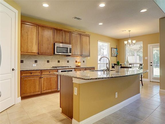 This stunning two story modern home has 5 bedrooms, 3 baths, and extended 2 car garage. With married modern luxury with loving comforts including a spacious media room and game room, this home artfully combines modern gourmet island kitchen with granite countertops and matching granite in the master bathroom with dual sinks. The master bath has giant garden tub and spacious closet. It boasts an open and bright breakfast area, stainless appliances, corner fireplace with large windows and tall ceilings and beautiful detail such as crown molding, wrought iron balusters, and beautifully updated light fixtures. Amazing open floorplan that is suited for entertaining. Located 4 houses down from the community pool!