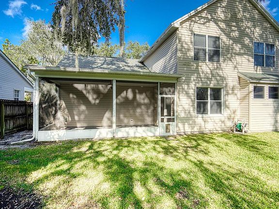 So much potential in this newer build home located in Creekside on Belcher, a small community of 13 homes on a lovely tree lined cul-de-sac in Dunedin! The street is so charming, a John Cena commercial was filmed there a few years ago. Great floor plan with a HUGE fully fenced backyard with a mature fruit bearing mango tree AND fig tree making for a lovely private oasis and certainly large enough for a pool. Eat-in kitchen is in the rear and overlooks the family room. Formal living and dining rooms in front. The primary suite upstairs has french doors leading to a large balcony. 2 more bedrooms and a 4th bedroom/bonus room are also situated upstairs. NOT IN A FLOOD ZONE! The home does need work but the mechanicals are in good working order. Appliances are 2 to 5 years old, 5 ton HVAC was just replaced and a new roof will be installed prior to closing. A cracked shower pan in the upstairs bathroom caused some water damage and a leak in the kitchen sink did the same downstairs. Both issues were addressed by a professional water damage restoration company. The homeowners were going to update the home but a work transfer happened first. Plan on new flooring and interior paint throughout as well as finishing the half bath, kitchen island and upstairs secondary bathroom.