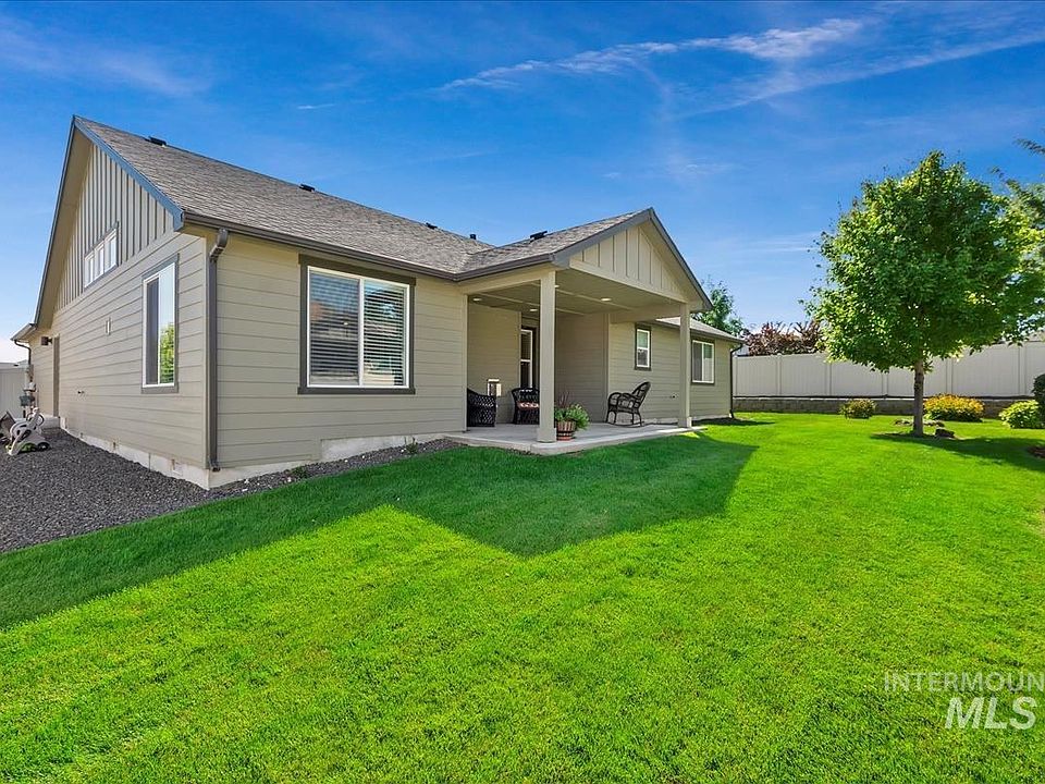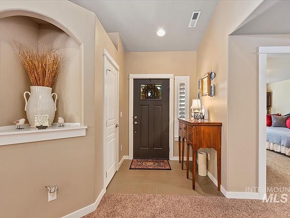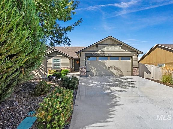 Discover this charming single-level home in Nampa's sought-after Sands Pointe Subdivision! With 1,805 sq ft of thoughtfully designed living space, this property offers a blend of comfort & modern functionality. Upon entering, you'll be captivated by the inviting & spacious interior, enhanced by vaulted ceilings that create an open, airy ambiance. The open concept layout seamlessly connects the living, dining & kitchen areas, providing an ideal setting for daily living & entertaining. The kitchen is a chef's dream, w/ample cabinet space, modern appliances & breakfast bar. Whether whipping up meals or hosting gatherings, this space accommodates it all. This home feat: 3 generously sized bdrms. The master suite offers a private bathroom w/a spacious vanity & shower. Two additional bdrms share a well-appointed full bath. Adding versatility to the floor plan is a den, adaptable for a home office, playroom, or an optional 4th bdrm. Step outside to the covered rear patio for morning coffee, BBQs or simply unwinding.