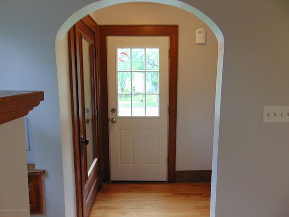 This charming, 1920's two-story home sits on a quiet, well-established street in the heart of Lansing. Enter the home through the vestibule with a sizable, mirrored coat closet into the bright living room with gleaming hardwood floors and large windows. On to the formal dining room with a built-in window side bar and access to the half bathroom and first-floor laundry. The kitchen has been updated with ceramic tile flooring, attractive vinyl countertops and new maple cabinets. Off the kitchen you find a side door that leads to the side and back yard as well as access to the basement. Up stairs you find the master bedroom with hardwood floors, a huge walk-in closet and access to the main bathroom that has a shower/tub, vanity with new sconces and another door to the hall. The 2nd and 3rd bedrooms have hardwood floors, neutral decor and sizable closets. At the end of the hall is a built-in linen closet with drawers.