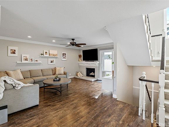 Tremendous opportunity to acquire a “Rare Gem” in the highly desirable Garden Park Village Community. A gorgeous bright and spacious Townhome with Two Primary Bedrooms and a Bonus Room! Upon front porch entry you will enjoy a Living Room/Dining Room open concept area perfect for entertaining, with recessed lighting and an upgraded push-to-start gas fireplace, complete with ceramic fire balls and fire glass. The outdoor Patio includes low-maintenance turf and is a perfect space for the barbecue and a seating area. The Kitchen features crisp white cabinetry, black granite countertops, stainless steel appliances and pantry. Right off the Kitchen & Dining Room is a front Balcony with views of the Complex and Pool/Spa area. The main floor Bathroom has been upgraded with white quartz countertop. The SPACIOUS Bedrooms each include a full Bathroom with white quartz countertops. The Main Primary Bedroom’s Bathroom is most inviting with dual vanity sinks. The Laundry is conveniently located on the same floor as the Bedrooms. Attached Two-car Garage with direct access to home. The Bonus Room just inside from the garage can be a Home Office, Gym, Play Area, Den, you decide! Home is beautifully maintained and tastefully upgraded. Dual pane windows and window treatments throughout; plenty of valuable storage; new **A/C** unit installed 2020; new water heater installed in 2021. Ideal location, close to Newport Beach, John Wayne Airport, South Coast Plaza, Fashion Island, Freeways: 5, 55, 73 & 405, restaurants, entertainment and schools