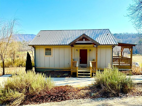 This beautiful 2 level mountain home is perfect for 2 airbnb's, a vacation home, or a home with a separate in law suite.The main level is stunning with cathedral wooden beam ceilings and a wood stove that looks like a piece of art.The views of the mountains out of the south facing windows is everything you expect in the WNC Mtn area.The covered side porch is the perfect place to enjoy your morning coffee.The loft on the main level adds more space w/ a sliding ladder and wrought iron details.The refrigerator & washer/dryer stay with the property.The kitchen has its own water heater & the bathroom & basement have an on demand system.The lower level has its own entrance with a patio& is surrounded by fruit trees,berry bushes,herbs,dahlias & perennials galore.The lower level has a toilet,sink & mini split for robust heating & air.It is partially finished w/room to make your own design.Enjoy the community's 7acres behind the houses that leads to the creek w/shared firepit,playground,stage &