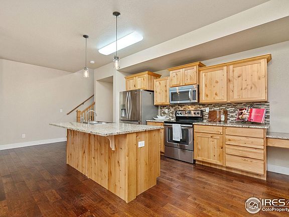 This property was pre-inspected! No Metro District! Welcome to gracious Ft. Collins living in this remarkably maintained and ready-to-move-in 2-bed, 3-bath townhome located in the highly desirable Bucking Horse community. Nestled in an unbeatable location close to Old Town, I-25, shopping, schools, Jessup Farm Village, and all the best that NoCo has to offer, this lovely home presents the perfect blend of convenience and easy living. As you enter from your spacious front patio you are greeted by a space full of sunlight and modern finishes, including gorgeous granite countertops, knotty alder cabinets, a gas fireplace, and lofty 9 ft ceilings. The entertainer's kitchen with SS appliances including a built-in microwave and upgraded fridge is where everyone will gather. The first floor boasts a mud/laundry room off the back entrance with sink and a main floor guest bath! Up one floor is the peaceful primary suite and secondary bedroom suite, each with their own ensuite bathrooms. Additional highlights of this townhome include a large primary walk-in closet, hardwood floors, storage throughout, 1-car garage, AC, built in bookshelves, and a xeriscaped courtyard. Your new home is adjacent to open space and a community firepit perfect for outdoor entertaining. The Bucking Horse neighborhood offers walkable amenities with a pool, community gardens, park, restaurants, coffee & ice cream shops, bike paths, nature preserves, and the famous Jessup Farm Artisan Village. This low maintenance townhome is ready to move in and start living the good life!