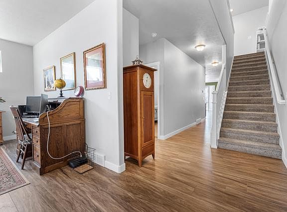 Come live in Mapleton's beautiful Harvest Park neighborhood. This beautiful home is within walking distance to Maple Ridge Elementary school and other neighborhood parks. This home has 3 Bed 2.5 Bath with loft area and room to expand 1 more bedroom with its unfinished basement. Vaulted ceiling in the master. Laminate on main and loft area, Custom Cabinets, AC Lennox Unit with UV, with Humidifier, Water Softener , Reverse Osmosis Water purifier Updated Cabinets, Kitchen Aid Induction cooktop and double oven, Plantation Shutters on Main Level, and Garden Boxes. Harvest Park really is a quintessential American neighborhood dream. Buyer to verify all information. Sq ft. per county.