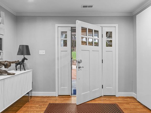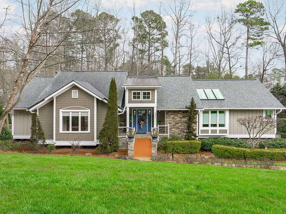 Welcome home to Weybridge Drive - a harmonious blend of sophistication and comfort. Elevated Italian lighting and solar-powered auto shade skylights exude opulence. Refined elegance is on display in the reimagined gourmet chef's kitchen (designed by Kitchen and Bath Galleries); complete with Miele appliances, a wine refrigerator, gleaming quartz countertops, and custom under-cabinet toe-kick lighting. Adjourn to the first-floor owner's suite and discover a dazzling ensuite spa, showcasing a tiled wall, glass surround GROHE waterfall shower, and floor-to-ceiling Closets by Design. A rare find, 2217 Weybridge offers not only a main-floor primary suite but two bedrooms, at least one full bathroom, and ample storage space for adaptable use. Downstairs, awaits a fully finished walk-out basement is an entertainer's dream - offering porcelain floors, a gas fireplace insert, a full wet bar, and even a Stact wine storage system! Impressive outdoor living and entertainment spaces feature agape landscaping, a covered gazebo, an outdoor living room, and an enormous covered lower-level designer-stamped concrete patio. A large driveway leads to a 2-car garage, complete with an EV charging outlet. Elevated comfort & luxurious modern amenities converge in this Raleigh masterpiece. Don't miss the chance to see it for yourself!
