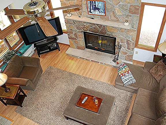 Popular floor plan - everyone's favorite! Nicely located for walking, biking and community center. Close to Deer Trail Lake beach and West beach on Lake Naomi. Open concept with loft upstairs. Laminate wood floors, granite and stainless appliances. Beautiful stone to ceiling wood burning fireplace; screen porch and dining area. Separate mud room with laundry and half bath. Master bedroom and bath on first floor. Attached storage closet near front entrance.