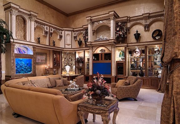 Expansive Mediterranean estate with cantera stone columns, gorgeous marble slabs & chef’s kitchen nestled in private gated community on a 2 acre water front lot. 8 bedrooms, gym, playroom, media room, loft & office. Massive marble master suite with impressive his/her showers & large whirlpool tub. Each bathroom features marble with Jacuzzi tubs. Backyard with lighted basketball/tennis court, covered patios & summer kitchen. Whole-house generator & hurricane impact glass. Fully furnished & designed by a top decorator. Please visit out virtual tour: www.realstates.com/videos/4578.wmv (Br # 22170) FOR ADDITIONAL