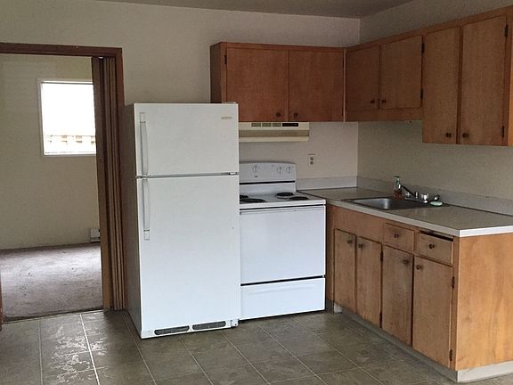 413 Downstairs apartment. EBB heat, kitchen w/ electric range and refrigerator. Coin laundry, off street parking. WAT/SEW/GARB PD, NO SMOKING, NO PETS ALLOWED.