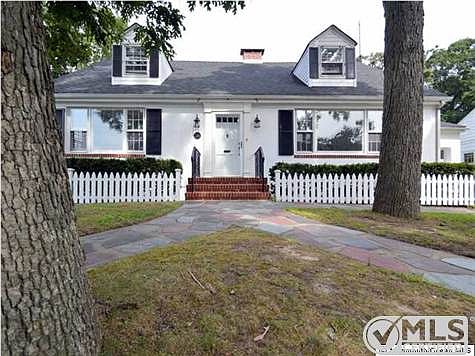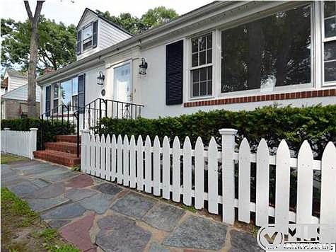 Charming cape on a pretty, tree lined quiet street. Two extra large second floor bedrooms, and two more on the first floor, make this home ideal for house guests. Conveniently attached garage. Full sized, partially finished basement with bilco doors to backyard. Light filled sunroom overlooking the surprisingly spacious and private backyard complete with patio and gas grill. Gleaming hardwood floors and brick fireplace too.