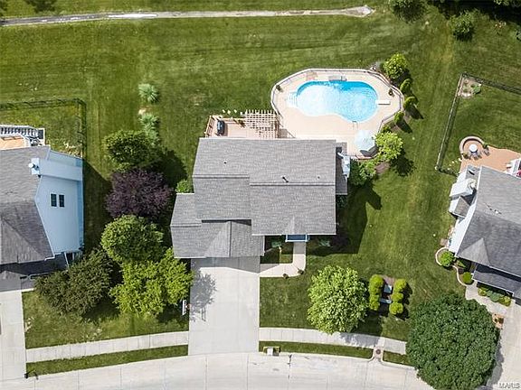 Paradise by the POOL Lights! Drumroll please, here's the TOP 10 things to enjoy about this home. 10-Mascoutah School District 9-Salt Water inground pool w/ diving board 8-Fountain features in the pool 7-Updates throughout...yes, kitchen is awesome 6-Updated luxury master bath suite (may decide to stay home all day with this one) 5 - 5 bedrooms, 3.5 baths 4-4100+ sq ft 3-No maintenance deck with pergola 2-Tons of UPDATES (just move on in) 1. No need for vacations, just live here! Need more than 10? zoned sprinkler system, granite countertops, butterfly island, walk-in pantry, refinished hardwood floors, newer carpet, FP, stainless kitchen appliances including Bosch dishwasher, Kenmore Elite brands, 42 cabinetry, built in desk; Bose outdoor speaker system, home gym area/bonus room, storage room, 9' ceilings on main level, large bedrooms, adjustable basketball goal, underground dog fence, stamped concrete around pool, landscaped, aluminum fence, wooded view. Ask for complete list.