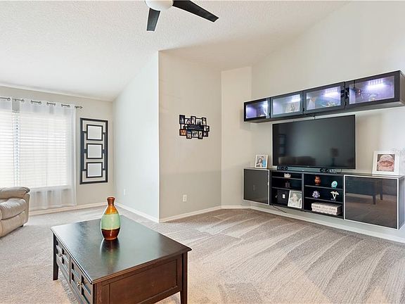 This darling home has been freshly updated and it's ready for you!! The exterior paint and siding are freshly installed plus HURRICANE WINDOWS and new VINYL FENCING. As you walk through the home, you will notice the high, vaulted ceilings, beautiful hardwood flooring, freshly updated bathrooms, interior paint, granite in the kitchen and bathrooms, fresh carpeting and stove and dishwasher were replaced about a year ago. The really cool entertainment center and washer and dryer convey with a great offer. The home is located in Sterling Ranch, a very nice, established neighborhood with a community pool and nice park. Come take a look today and make this beauty your own!