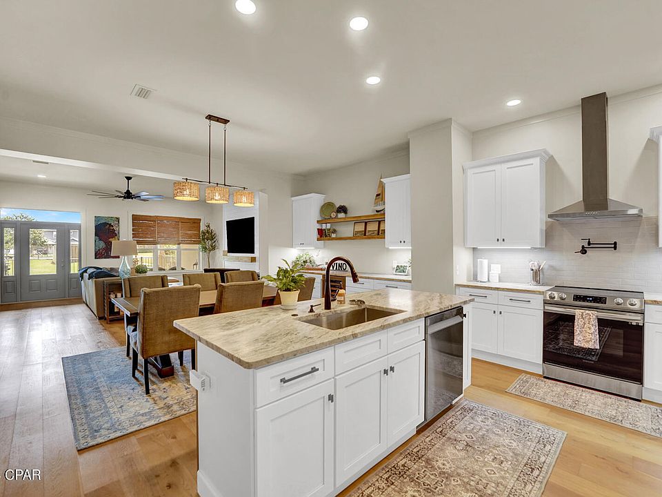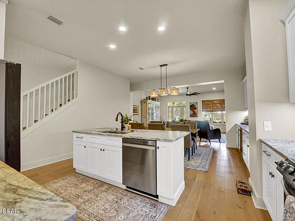 Motivated Seller! Moving for job and says bring ALL offers! Nicely remodeled 2,659 sq.ft. townhome in Bear Point. This 4-bedroom, 4-bathroom home is a boater's DREAM! Just a short boat ride to Shell Island and downtown historic St. Andrews. Home comes with private boat slip AND boat lift! The home itself has been remodeled, featuring new flooring downstairs, new kitchen countertops, appliances, tiled backsplash, cabinets, wine fridge, and a HUGE pantry with a ''morning kitchen''. The main living room has a fireplace and custom TV cabinet. The downstairs bathroom has been remodeled featuring a tiled, walk-in shower, new vanity and counter tops, and fixtures. The home has mostly new fixtures throughout. There is a bedroom and bathroom on the first floor of the home, and the additional 3 bedrooms and 3 bathrooms are upstairs. The home is perfect and ready for its newest owner! High ceilings throughout the home. Close to all the attractions and dining the East end has to offer, but quietly tucked away for peacefulness and quietness. The back porch is the perfect spot to sit and relax after a long day. All measurements are approx., and should be verified by buyer.