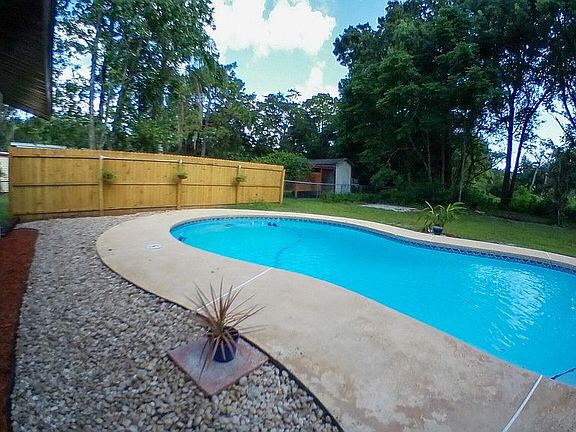 Large 1,700+ sq ft living area, concrete block home, 3 bedrooms, 3.5 bathrooms PLUS Pool Home on .4 +/- Acres, with Single Car Garage New/remodeled features: o New roof o New kitchen cabines with Solid Surface countertops o New fully updated modern bathrooms o All new Stainless Steel Appliances o New vinyl floating flooring throughout entire home, with all new baseboards o All new Lighting fixtures, and ceiling fans o New Water Heater o Too many other new items to mention!! ? Two master suites, each with private baths. ? Third bedroom with private access off pool area ? Fully fenced property ? Backyard Pool Oasis with Privacy Fence ? Outside pool bathroom, with outside shower ? Large Single Car Garage, high open ceiling with storage shelves ? Additional Covered Carport parking spot on concrete slab ? Minutes to Downtown Eustis or Mount Dora, near parks and shopping ? Walk to nearby Palmetto Pointe Park, a beautiful family park with trails and activities ? Nice quiet street & neighborhood, wooded land across from home ? Large laundry room with shelves ? Large single car garage, plus additional single car carport ? Beautiful, landscaped yard and pool area ? For Sale By Owner