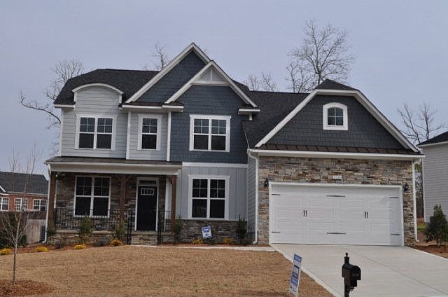 The Franklin - If you are looking for lots of room - this home can provide that with style. The covered front porch with columns will welcome you into the foyer where you can access the formal dining room or the study. The hall will lead you to a spacious family room with fireplace. The kitchen has an island, a pantry and beautiful stained cabinetry plus a dining area that overlooks the covered back porch. The master suite has a trey ceiling, lots of closet space and the master bath has dual vanities, a garden tub, and separate shower. Three additional bedrooms with vaulted ceilings upstairs, as well as, two full baths, the laundry room, a loft, a rec room and an office plus additional walk-in storage. The above picture is a rendering - the home is under construction.