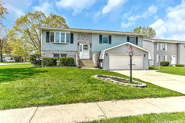 Spacious 3 bedroom 3 bath bi-level with 2.5 car garage on fenced corner lot! Main level offers bow window in living room that opens to formal dining area with new sliding doors to deck, updated kitchen offers oak cabinets, new window, counters, custom back splash & large pantry, spacious remodeled full bath & 2 bedrooms with ceiling fans including large master with 2 closets & sliders to balcony, lower level offers huge rec-room area & 10x8 laundry, 3/4 bath area - both baths have new floor, vanity & toilet, central air 10 years old, furnace 5 years old, HWH 3 years old, shed, finished garage & 21x09 insulated storage room behind garage, brand new shingles, 6' fence & more close to 80/94, Toll Rd & South Shore!