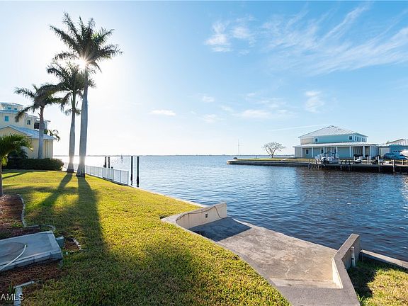 WAKE UP EVERY MORNING TO SWEEPING RIVER VIEWS AND ENDLESS SUNSHINE! Step into a life of laid-back luxury in this 3 bed, 2 bath Cape Coral gem where each day begins with shimmering water right outside your lanai. Lounge by the pool with the breeze off the nearly 200-foot-wide canal, watching boats glide past as you sip your morning coffee. Entertain with ease—from the classic interior layout featuring a private kitchen with bar seating to the cozy wet bar perfect for evening cocktails. Imagine the cedar scent of your walk-in closet, the sound of laughter echoing off the dock’s sitting area as the sun sets in a blaze of color. This home blends the warmth of Florida living with timeless comfort, nestled in a sought-after neighborhood with a striking circular driveway and a high-resistance pool cage built to last. With direct Gulf access just beyond your backyard, adventure is always just a boat ride away. Schedule your private showing today and start living the dream.