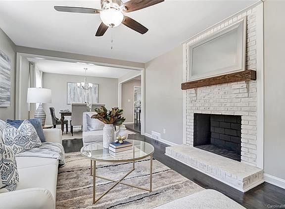 PRICED TO SELL ~ Modernized Ranch style home 4 Bed/2 Bath in Country Club Heights. 1 Year Home Warranty Included. Just 1.6 mi to art galleries/music venues of NoDa, 2.5 mi to Plaza Midwood, and 4 mi to Uptown. Fully Updated to provide all the contemporary amenities you have always wanted. Features include Hardwood floors throughout the Open Floor Plan, light & bright Living Room w/Wood Burning Fireplace and Formal Dining Room. Great for entertaining! The New Kitchen boasts Quartz countertops, Large Prep Center Island, Gorgeous Tile Backsplash, New Steel Appliances, and New Bright White Soft Close Cabinets. Enjoy your private Owners Suite located opposite of the 3 other bedrooms w/Owners private lavatory featuring: Dual sinks, Tile floors and Spa-Like Shower. Laundry Room offers Electric/Gas hook-up w/Updated Beadboard and Wood-Like Tile. Large Flat and totally Fenced Backyard w/Storage Shed. New Brick Patio Pavers perfect for a BBQ with friends. New HVAC, New Air Ducts, and New Roof!