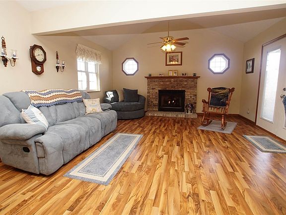 Cute, Neat and Well Maintained describe this 3 bedroom, 2 bath Brick & Vinyl home. Large great room with gas fireplace, beautiful laminate flooring and an atrium door leading to the covered patio. Fully applianced kitchen with oak cabinetry, pantry, sliding door. The dishwasher, range and microwave are all newer. All 3 bedrooms have walk-in closets. Backyard has chain link fence. 2 Car attached garage.
