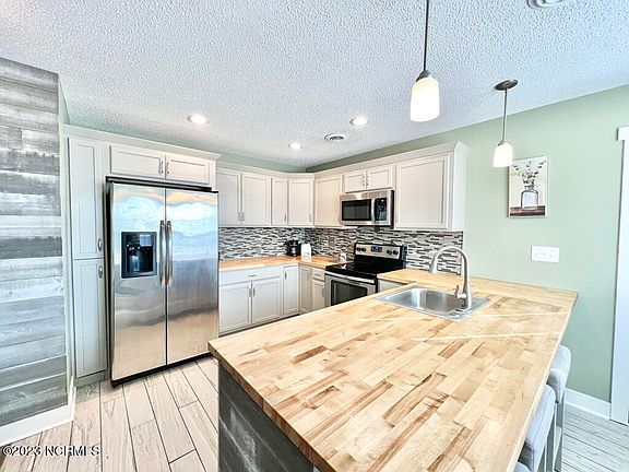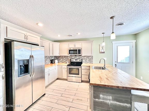**Multiple Offers - Highest and Best Offers Due by 6pm 1/7/23** When you walk through the front door of this picturesque home on a cul-de-sac in this highly sought after ogden area location, you will find modern seaside living at it's best! Warm, inviting, and full of natural light, this renovated home has been updated with LVP flooring that flows from the foyer throughout the open floor plan! The renovated kitchen was well planned for the cooking enthusiast and for entertaining, with extensive butcher block countertops wood cabinets, and stainless steel appliances! The owner's retreat is a true sanctuary complete with a custom designed closet organization system, new (2021) sliding glass doors leading out to your private patio, and renovated ensuite bathroom complete with a new sink, cabinet, mirror, commode, and lighting. The well designed floorpan of this 2 bedroom 2 bath home makes it feel much larger than it measures! The outdoor living space is abundant here between the covered front porch and two patios, one off the kitchen and the other off the master bedroom suite. There are two exterior storage areas, one attached storage as well as a large detached shed. In the fully fenced area off the kitchen you will find a pergola where you can gather with friends, grill out, garden, or use the area as a driveway extension and through the double gates, park your car, boat, or RV! Renovations & Upgrades Include: Fully renovated kitchen with new cabinets and redesigned butcher block countertops and appliances, new seamless LVP waterproof flooring, a renovated master bathroom with sliding glass door and ensuite bath, new trim throughout, updated paint colors, and new blinds. New HVAC in 2020 and new Roof in 2019! This coastal retreat is located just 4 miles from Mayfair, 6 miles to the beautiful beaches of Wrightsville Beach, and 9 miles from Downtown Wilmington Riverfront. Most of the furniture in the home is negotiable