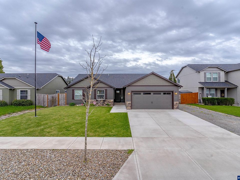 Accepted Offer with Contingencies. Welcome home to this single level! Almost new! Location is within walking distance to Stayton Middle School. Upgrades include a nice size lot including room for RV parking, granite countertops, top of the line siding, air conditioning, gas fireplace, covered patio, great neutral colors, large pantry and much more! Make your appointment today! Plenty of room for a large RV or boat.