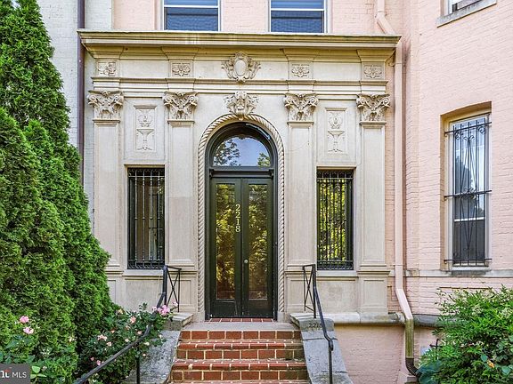 Welcome to this Kalorama Grande Dame! A stately home with period details abound that awaits your personal touch! A grand entry foyer with architectural moldings & paneling leads you into the large formal living with high ceilings, bo window & wood burning fireplace. Spacious formal dining room features built-ins, architectural molding on ceiling, & large leaded glass window with banquette. The bright eat-in kitchen with "butler's" area provides access to rear brick courtyard and detached 2 car garage. A grand multi-level staircase leads to the 2 upper levels, the first provides the large master suite with bright master bath, a sitting room with built-ins and wood burning fireplace can be accessed from both the master bath & hallway. 2 additional bedrooms and hall bath round out the first upper level. The second upper level features 2 full baths & 4 additional bedrooms. The lower level features large laundry room with water closet, storage rooms & walkout access to both the front & back of home. 2218 Wyoming is located in one of DC's most prestigious neighborhoods, perfectly located with easy access to shops, restaurants, and downtown DC.
