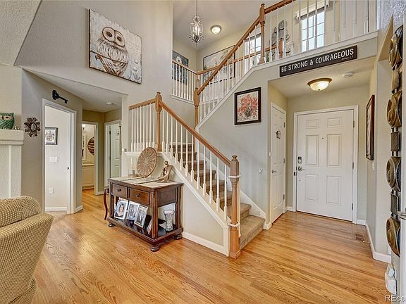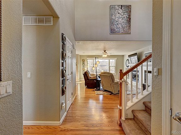 Beautifully updated immaculate townhome in sought after Ridgeview Eagle Bend. Walk into a light, bright living area with red oak hardwood floors. Main level includes living room with new Anderson window & gas fireplace, formal dining room, updated eat-in kitchen, quartz counters, 42" cabinets, and newer stainless appliances, gas stove hookup available, bedroom used as study, full updated bath, laundry room w/upper cabinets. Seller also installed a Water softner system . Upper level has master bedroom with walk-in closet, updated bath has spa shower w/bench seat, double sink vanity w/drawers, elongated toilet, and ceramic tile floor. 2nd bedroom has full bath. Full daylight lower level has family room w/flex space, & large bedroom w/large walk-in closet, & full bath. Two car attached garage. Close to pool, Kiddie pool, play area, & short walk to fenced dog park. Great Cherry Creek schools.