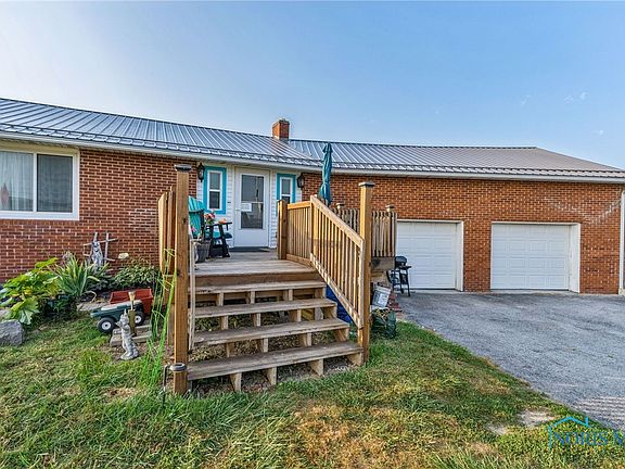This beautifully updated Fostoria home has a peaceful country feel providing over 2 acres and boasts major upgrades: new metal roof (2023), central air (2021), windows (2019), Amish-crafted kitchen cabinets and granite countertops (2023), new water softener, well pump, and pressure tank (2023-2024). Enjoy a renovated bath, fresh paint, and flooring. Expanded front wall, new deck, lighting, plumbing, and more! Natural stone garage floor (2024) and pool (2024). This home is move in ready with peace of mind!