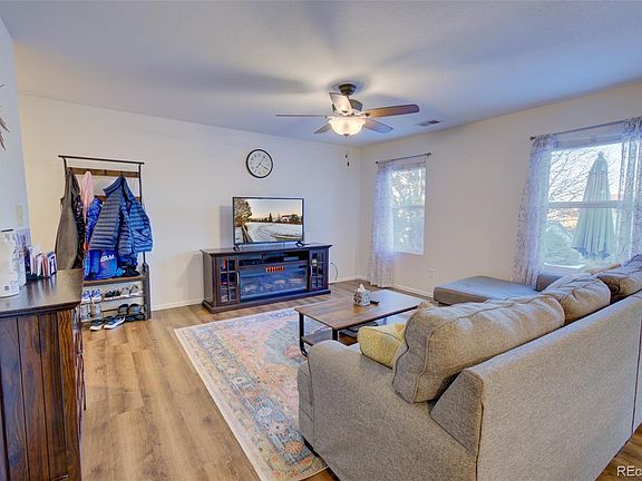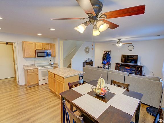 Wonderful 3 bed, 3 bath end unit town home backing to gorgeous greenbelt in the highly sought after Trail Ridge neighborhood!This home features a fantastic flowing floor plan. Enter into the front foyer that opens up into the enormous family room with large windows overlooking the backyard. Good sized kitchen with an abundance of cabinets and countertop area, large pantry, plus a handy eat-at island. Enjoy entertaining with the nicely sized dining area that opens to a massive patio. Round out the main level with a handy main floor laundry and powder bathroom. Newer scratch resistant and waterproof flooring on main level. Upstairs features a large primary bedroom with two closets and a full ensuite bath. Two additional secondary bedrooms and an additional full bath complete upstairs. Relax in the fantastic backyard with nice patio overlooking greenbelt area. One of the best locations in Trail Ridge. Walking distance to greenbelt, neighborhood play park, and trails. Easy access to neighborhood schools, recreation, shopping, E-470, and more. Come see this great home that is ready for you to move into. This one won’t last long!